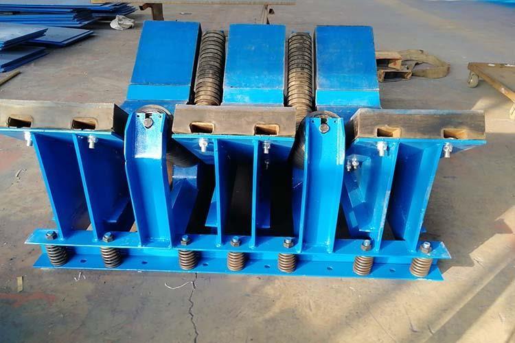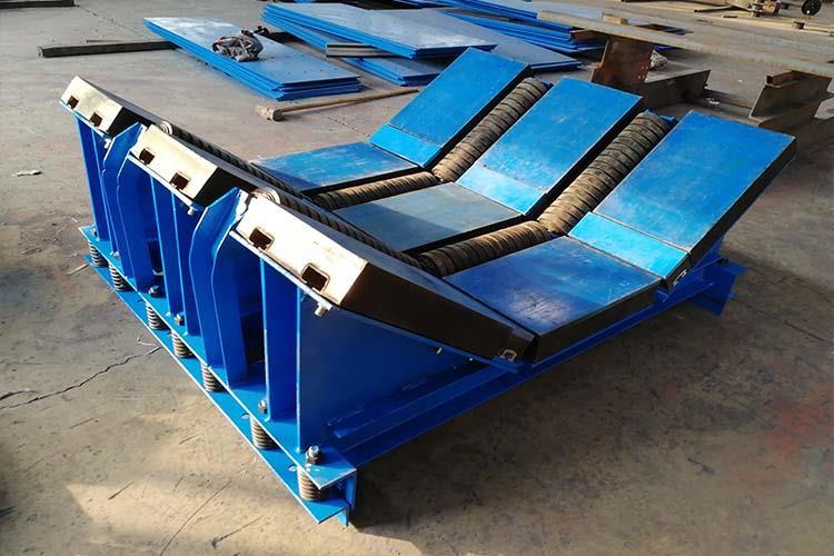 皮帶機(jī)緩沖床主要用于皮帶機(jī)導(dǎo)料槽下方的落料口處,當(dāng)物料下落時(shí),緩沖床利用自身彈性對(duì)物料下落到皮帶上的沖擊力進(jìn)行處理,使沖擊力達(dá)到很小,以保證皮帶機(jī)正常運(yùn)行。皮帶機(jī)緩沖床的表層緩沖條擁有五百萬(wàn)分子量的高分子聚乙烯板面,該高板于皮帶呈面面接觸,使?jié)櫥赃_(dá)到很高,摩擦系數(shù)降至很低。