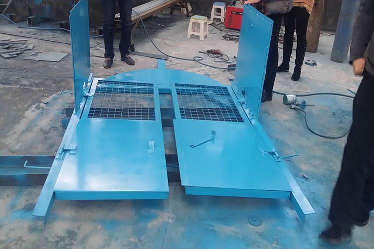 3、將方向調正,保證防火柵欄兩用門只能向外開,然后將兩扇門同時用力立起在井口。